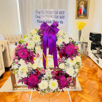Double Funeral Wreath – White & Purple(Product Code :SH_06 )