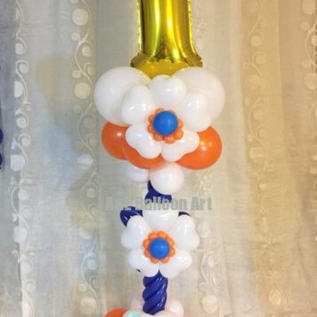 Column Balloon Design With Flowers And Number 1 On Top (Design Code: AC160)
