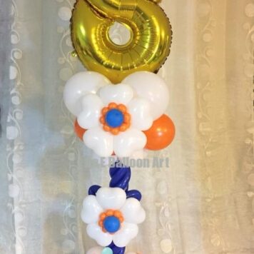 Column Balloon Design With Flowers And Number 8 On Top (Design Code:CB24)