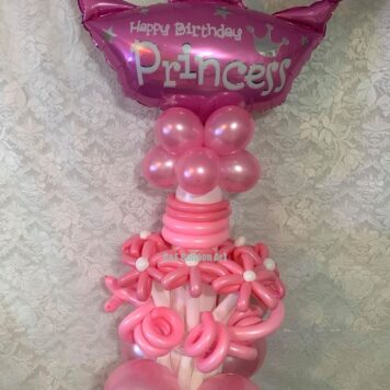 Balloon Column Design With Flowers And Crown Balloon On Top (Design Code: BS41)