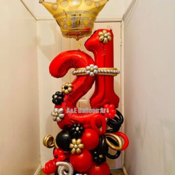 Number 21 Design With Flowers Crown Balloon On Top (Design Code: N20)
