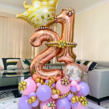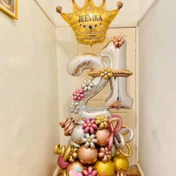 Number 21 Design With Flowers Crown Balloon On Top (Design Code: N112)