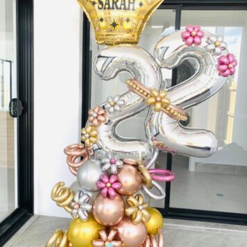 Number 22 Design With Flowers Crown Balloon On Top (Design Code: N87)
