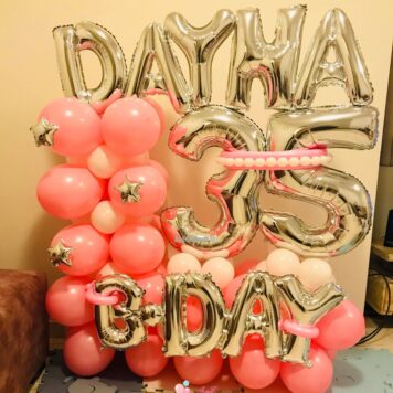 Number 35 Design With Beautiful Flowers And Helium Balloon (Design Code: N06)
