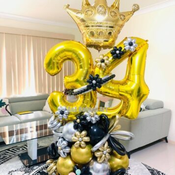 Number 36 Design With Chrome Helium Balloon And Beautiful Flower (Design Code: N203)