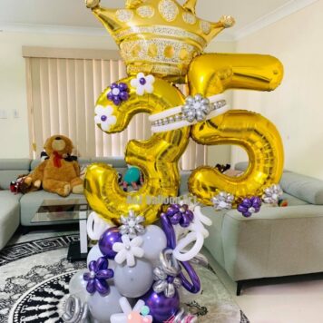 Number 35 Design With Flowers Crown Balloon On Top (Design Code: N45)
