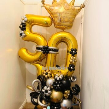Number 50 Design With Flowers Crown Balloon On Top (Design Code: N112_1)