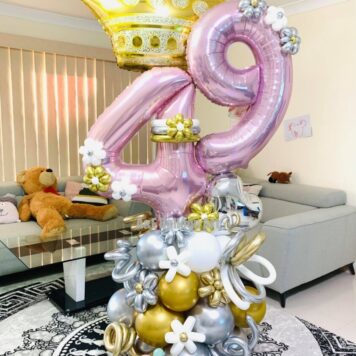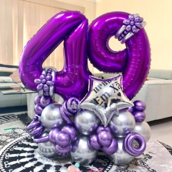 Number 49 Design With Flowers Crown Balloon On Top (Design Code: N63)