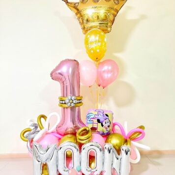 Number 1 Design With Flowers And Crown Balloon On Top (Design Code: 1ST028)