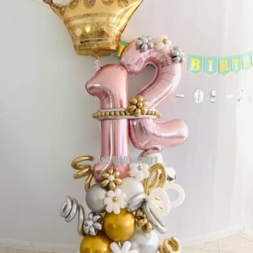 Number 12 Design With Flowers Crown Balloon On Top (Design Code: N92)