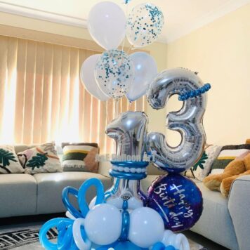 Number 13 Design With Chrome Helium Balloon And Flowers (Design Code: N197)