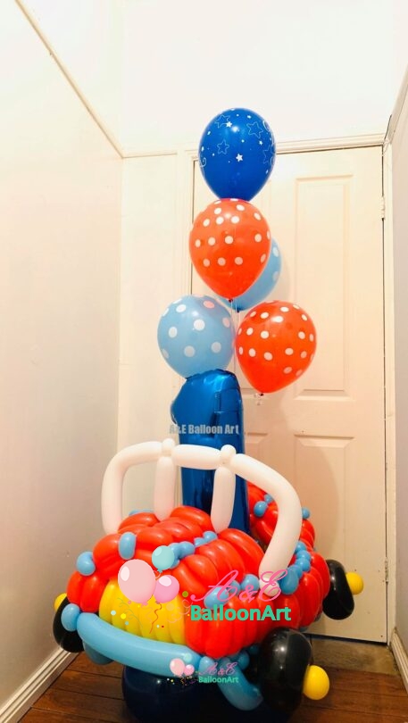 Number 1 design with car and helium balloons on top. Car size about 80cm.