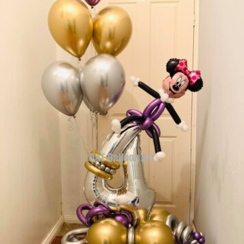 Number 4 Design With Chrome Helium Balloon And Mini Mouse Character (Design Code: AC109)