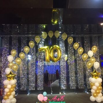 - 5 bunch helium balloon behind the chair.(7 helium balloons each bunch).