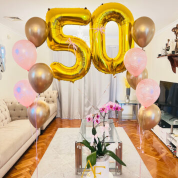 Number 50 Gold Balloon Set & Orchid Gift(Design Code: N50_1025)