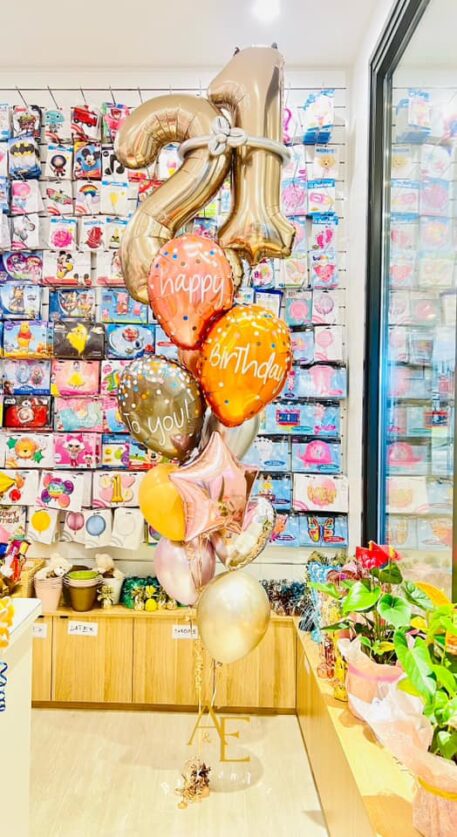 Number 21 With Beautiful Helium Balloon Mix With Champagne Color(Design Code:H21_C) quantity