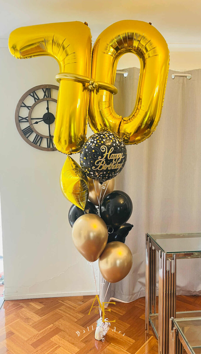 Number 70 Black & Gold Birthday Balloon Bouquet(Design Code: N70_126)