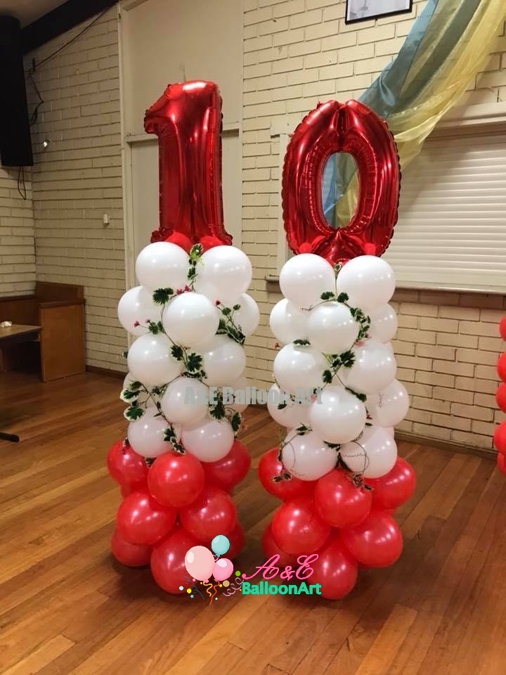 Number 10 Column Balloon Design With Plastic Leaf And Number (Design Code:CB13) quantity