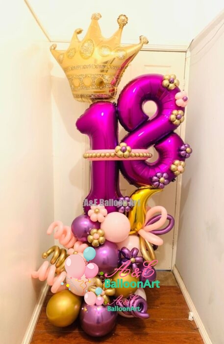 Number 18 Design With Flowers And Crown Balloon On Top (Design Code: N98) quantity