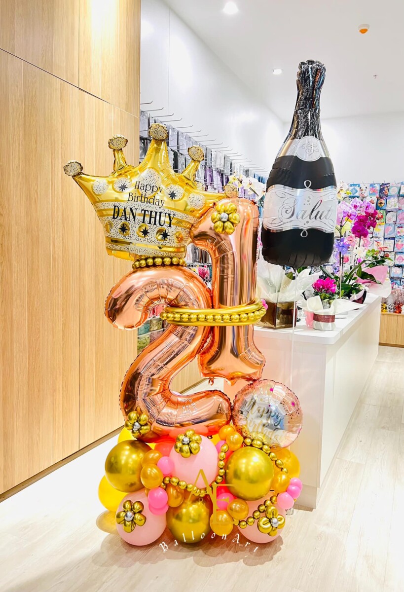 Number 21 design with crown on top. (Printed name ‘Happy Birthday Dan Thuy’)