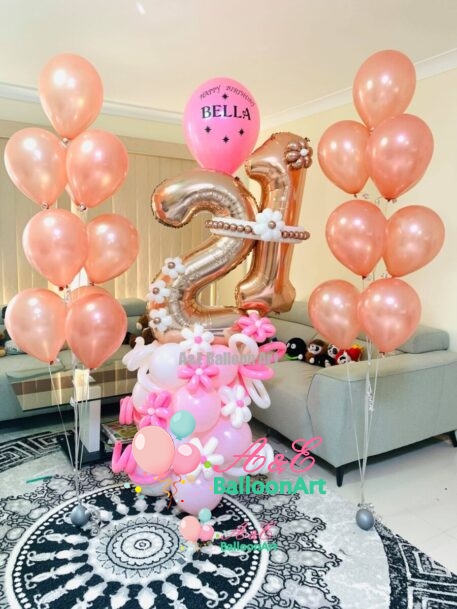 Number 21 Design With Flowers And Balloon Printed On Top (Design Code: N31)