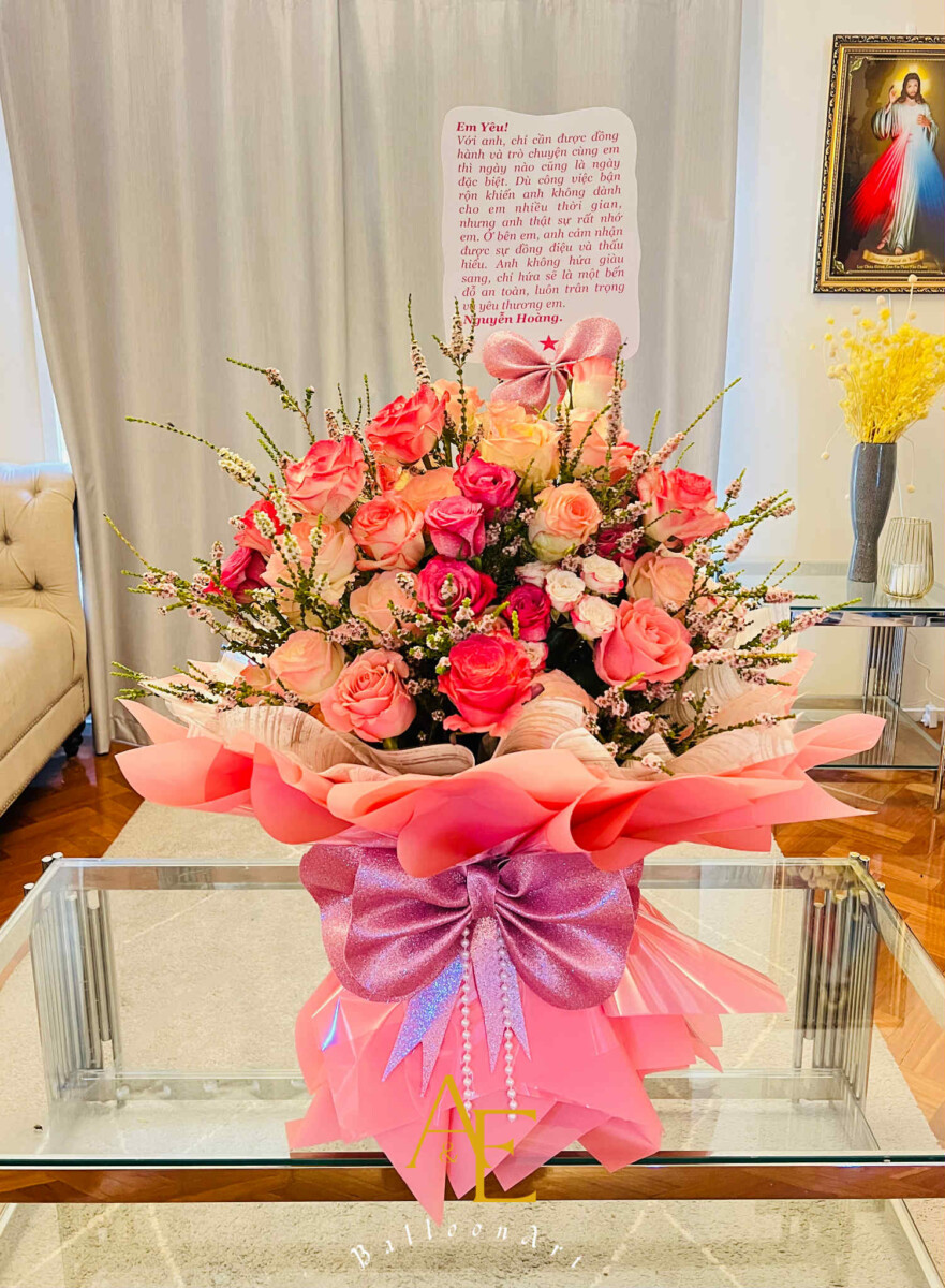 A luxurious jumbo bouquet featuring an abundant arrangement of 55 pink roses, layered wrapping, and a statement ribbon. Designed to impress and make any moment unforgettable.