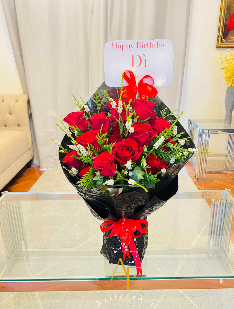 A classic bouquet of 15 deep red roses symbolising love, passion, and admiration. Beautifully wrapped with elegant accents, ideal for romantic occasions and special celebrations.