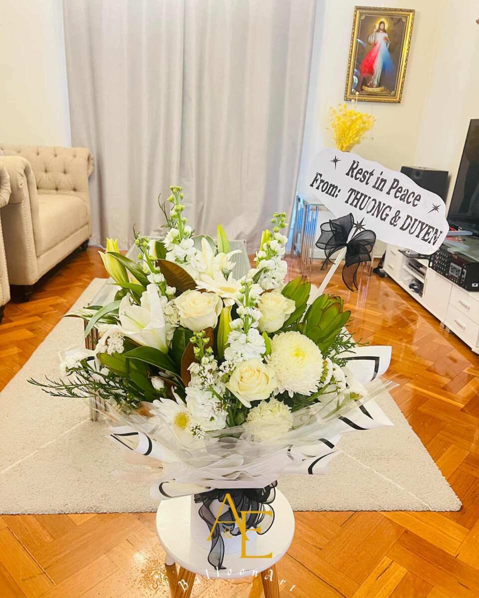 Flowers Bouquet For Funeral With White Color(Product Code :BF_F03)