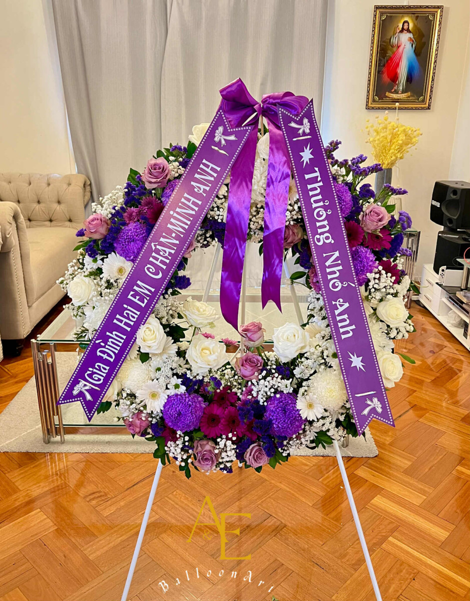 Purple represents dignity and remembrance, while white reflects peace and sincerity — a thoughtful expression of condolence and support during times of loss.