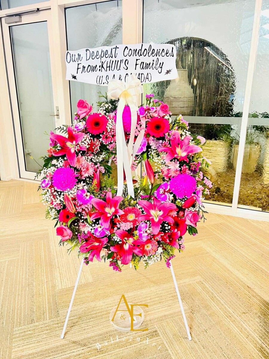 A wealth created form fresh flowers such as : roses , baby breath, lily,chrysanthemums accented with greenery. These flowers are shipped fresh, budding and ready to bloom. Stand not included.